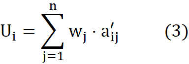 Uᵢ — интегральный показатель полезности i-й альтернативы (безразмерная