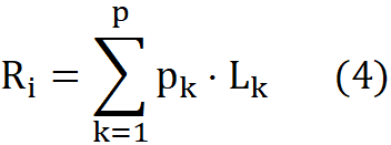 Для учёта неопределённости вводится показатель риска Rᵢ, рассчитываемый как взвешенная сумма вероятностных оценок негативных событий в соответствии с рискоориентированной технологией [7, с. 24–27]: