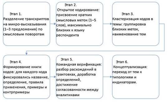 Рис. 2. – Последовательность этапов процедуры анализа полученных в ходе глубинных интервью данных.
