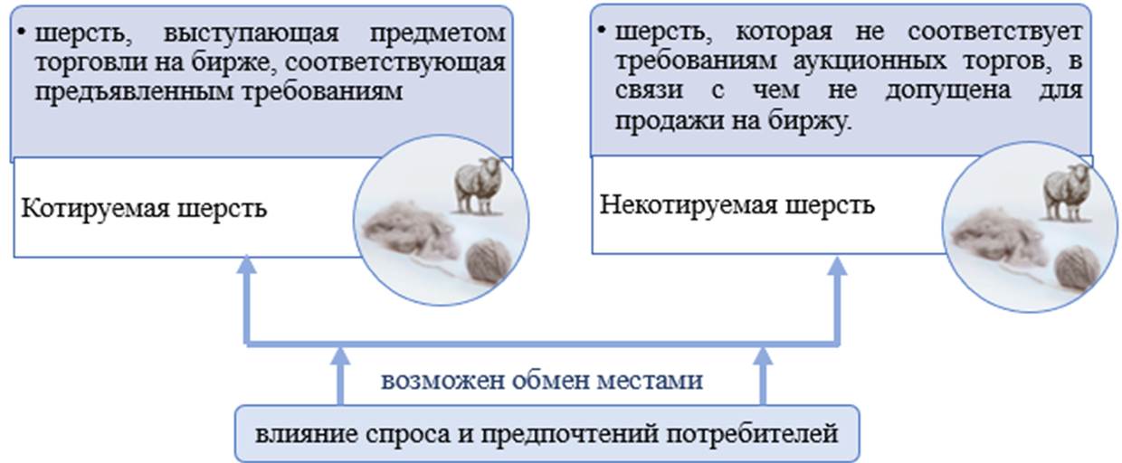 Рисунок 2 – Авторское понятие котируемой/некотируемой шерсти на товарной биржи (составлено автором)