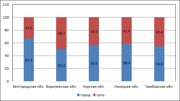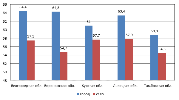Самую высокую позицию среди анализируемых регионов занимает Липецкая область (27 место), где первый показатель достигает 27,6%, а второй показатель – 4,1%. Белгородская область также расположена в первой половине рейтинга и занимает 32 позицию (первый показатель – 25,2%; второй показатель – 3,6%). То есть, в этих регионах каждый четвертый работник получает заработную плату выше средней по стране, что связано с развитием металлургической промышленности и наличием крупных высокодоходных предприятий. Остальные регионы ЦЧР расположились во второй половине рейтинга. Курская область занимает 49 место (первый показатель 21,2%; второй показатель – 3%), Воронежская область – 58 место (первый показатель – 18,4%; второй показатель – 2,7%), Тамбовская область – 73 место (первый показатель – 13,6%; второй показатель – 1,8%).