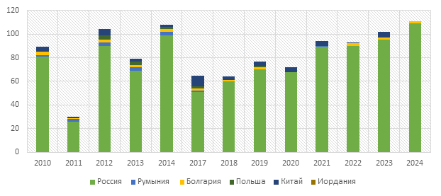 Рассмотрим также количество граждан Армении, получивших степень бакалавра за рубежом в рамках программ обмена. В течении последних пяти лет наблюдается устойчивая динамика роста обучающихся зарубежом. К 2024 году количество обучающихся за границей достиг своего максимума. Наиболее популярным направлением для образовательной миграции является Россия, на которую приходится больше 90% армянских студентов. Среди других направлений можно отметить Болгарию, Румынию и Польшу.