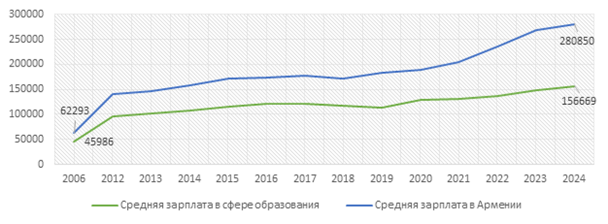Рисунок 6. Динамика средней заработной платы в Республике Армения и средней заработной платы в секторе образования