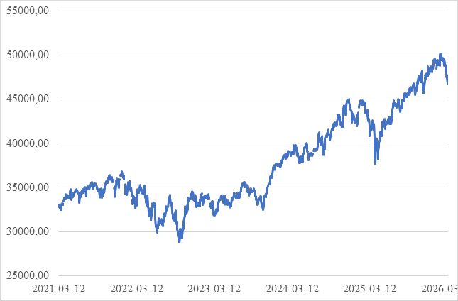 Рис. 1. Динамика Индекса Доу-Джонса в 2020-2026 гг.