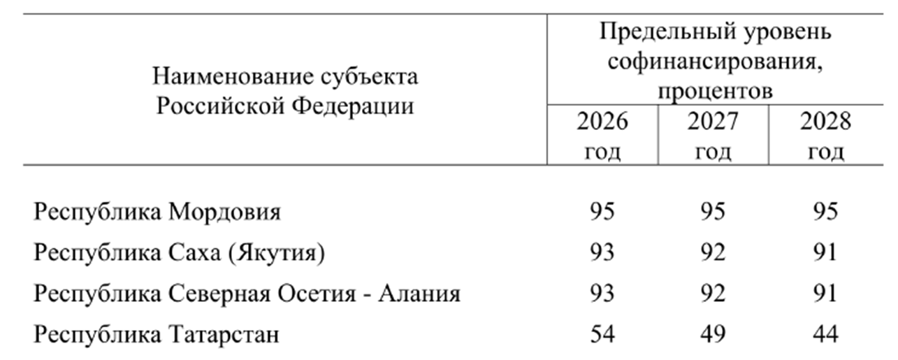 Таблица 3 – Пример объемов софинансирования для Республики Татарстан (фрагмент из Распоряжения №2006-р)*
