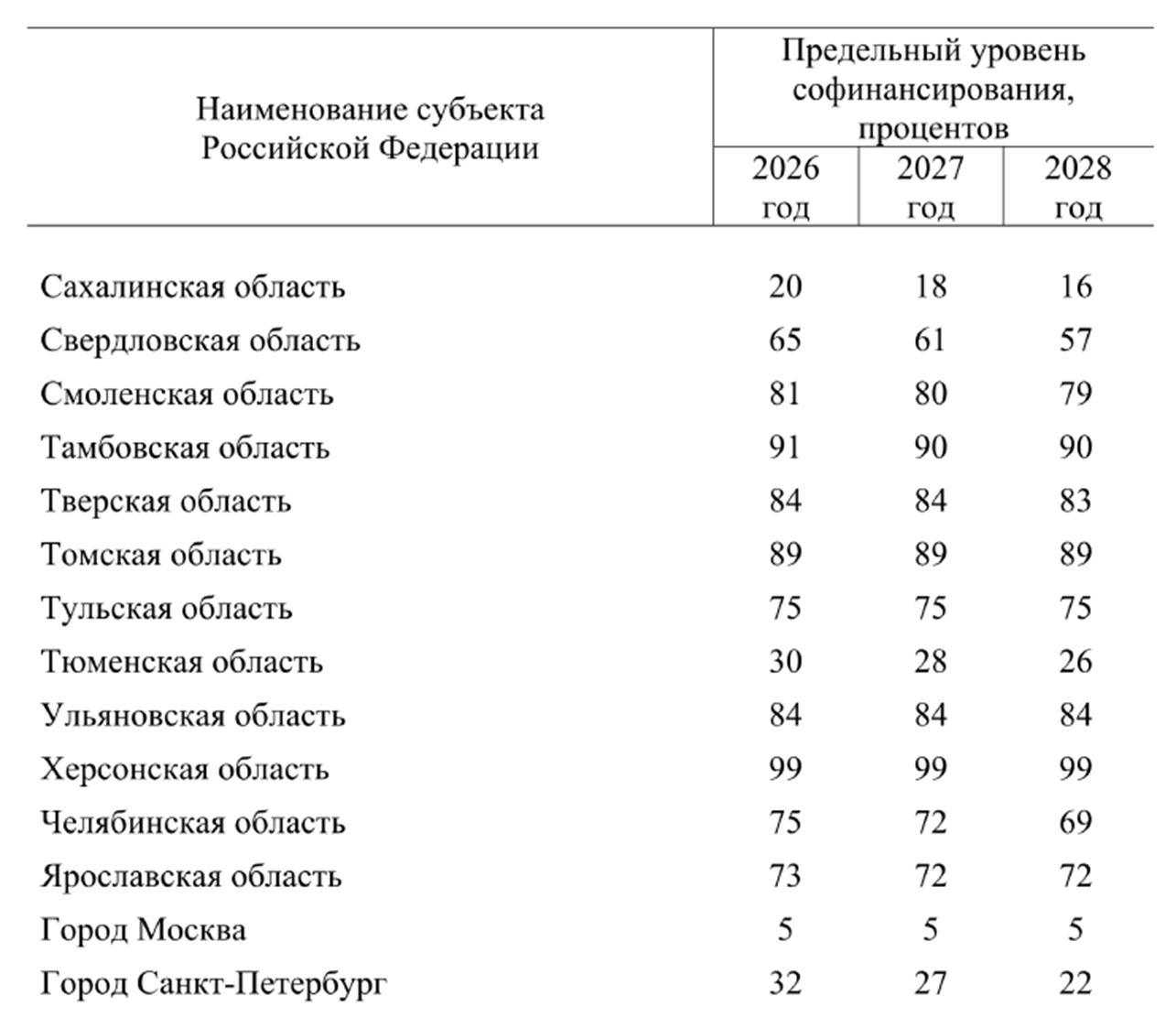 Таблица 4 – Пример объемов софинансирования для г. Москвы и Сахалинской области (фрагмент из Распоряжения №2006-р)*