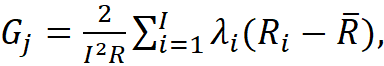 Адаптация индекса Джини для оценки концентрации отрасли i в совокупности территорий выглядит следующим образом: