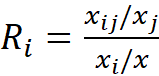 В качестве исходного элемента данных при построении специализированных индикаторов региональной специализации и отраслевой концентрации мы рассматриваем значение переменной x в отрасли i по региону j, которую обозначаем xij. Общий принцип построения индикаторов заключается в том, что данные значения соотносятся с базовыми уровнями, в качестве которых выступают общий уровень по региону j (xj) в совокупности всех его отраслей, и общий уровень по отрасли i по всем регионам (xi), а также совокупный объем используемой переменной в экономике страны (или объединения стран) в целом x.