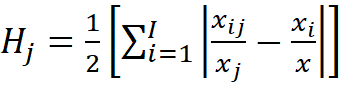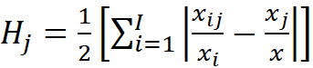 Популярным методом анализа агломерации является коэффициент Гувера (Hoover), сравнивающий структуру отрасли/региона с эталонной структурой всех отраслей/регионов. Для случая оценки отраслевой структуры региона j формула принимает вид: