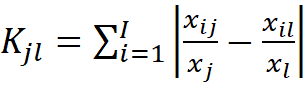Коэффициент Кругмана (Krugman) используется для парного сравнения. В случае сравнения отраслевой структуры по регионам j и l используется формула: