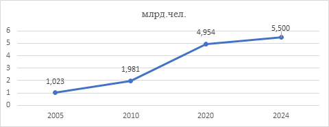Динамика глобального количества интернет-пользователей представлена на рисунке 1.