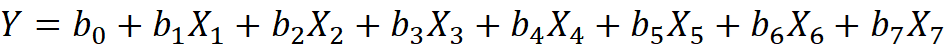 где Y – оценка общей готовности к онлайн-обучению; Xi – средние оценки по i-му мотивационному фактору; βi – искомые коэффициенты влияния.