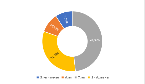 Рис. 4. Распределение энергосервисных контрактов по длительности заключения / Fig. 4. Distribution of energy service contracts by contract duration.