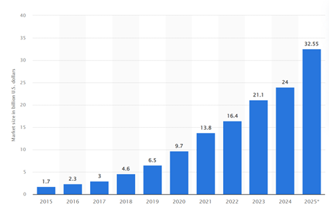 Рисунок 7 – Динамика рынка маркетинга влияния, 2015-2025 гг.