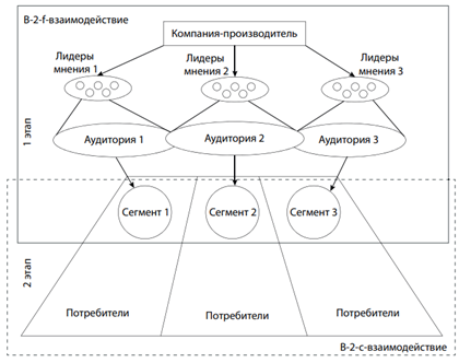 2) формат влияния коммуникации, ориентированной на взаимодействие брендов с лидерами мнений, которые взаимодействуют с потребителями напрямую.