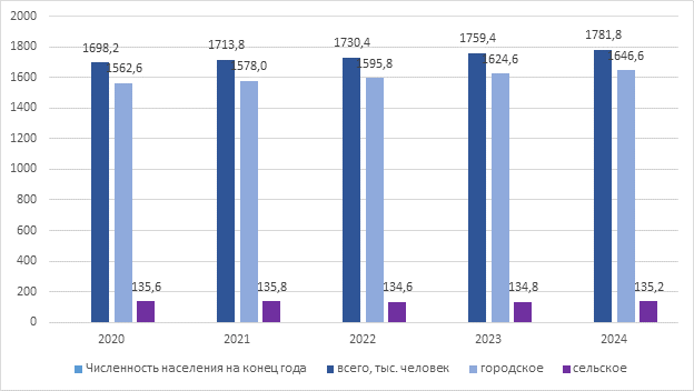 Рисунок 8 – Численность населения ХМАО-Югры 2020-2024 гг., тыс. чел.