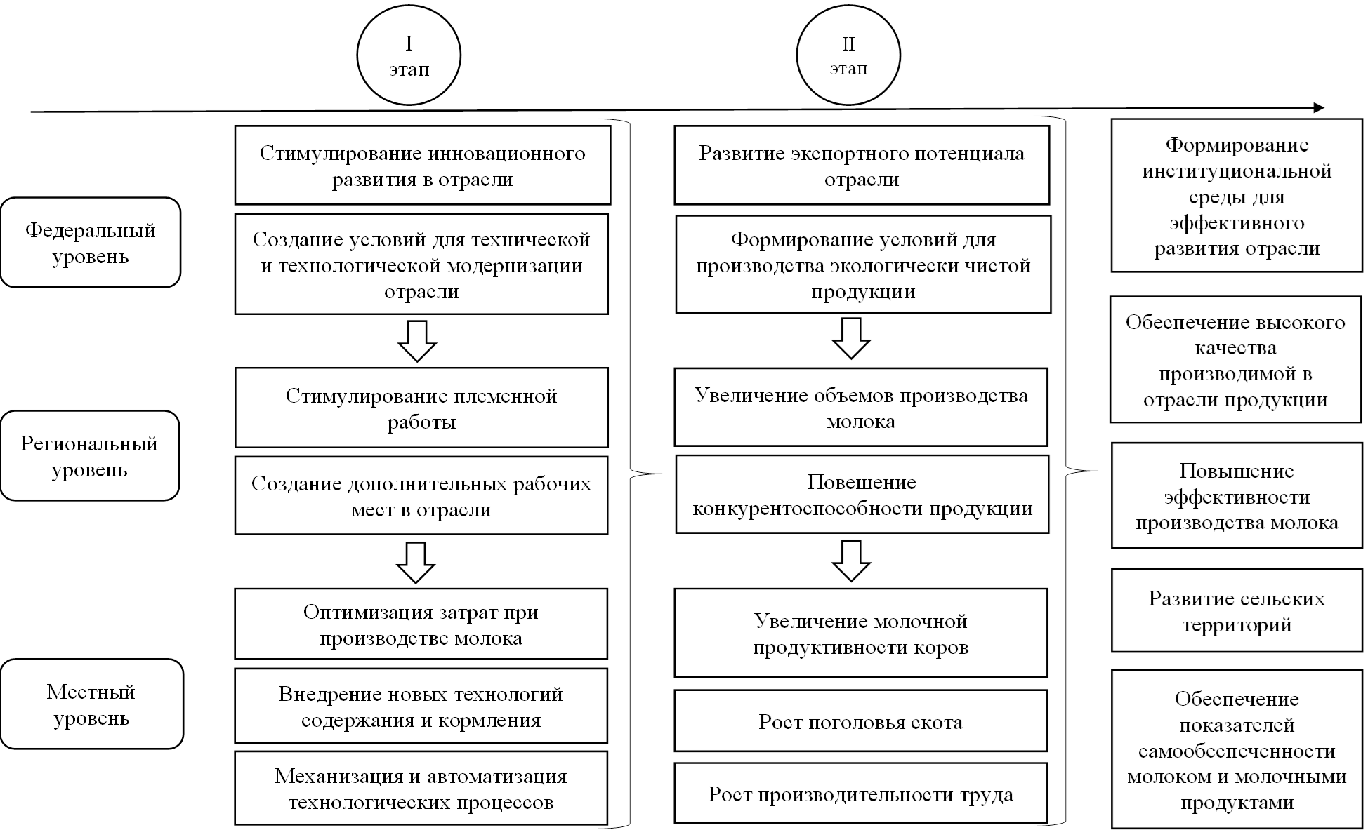 Рисунок 4 – Направления повышения эффективности молочного скотоводства региона и этапы их реализации