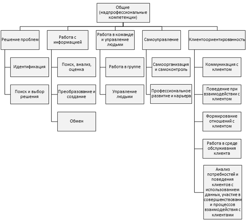 -общие (базовые, надпрофессиональные) компетенции – минимальные возможные, общие, неспециализированные трудовые действия, умения и знания, применимые для широкого круга профессий работников всех отраслей и сфер деятельности;