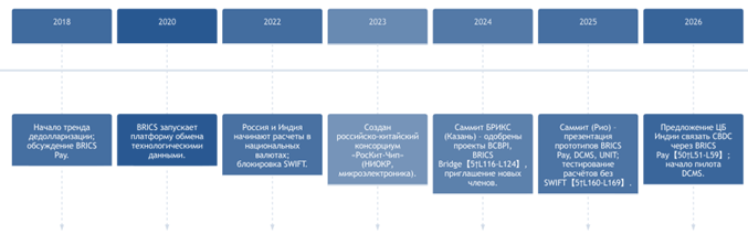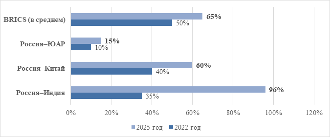 При этом факт того, что в двусторонних расчетах России и Индии доля национальных валют превысила 96% к концу 2025 г., убедителен как пример эффективного платежного коридора, но не является доказательством полной готовности многосторонней расчетной архитектуры BRICS+ [14].