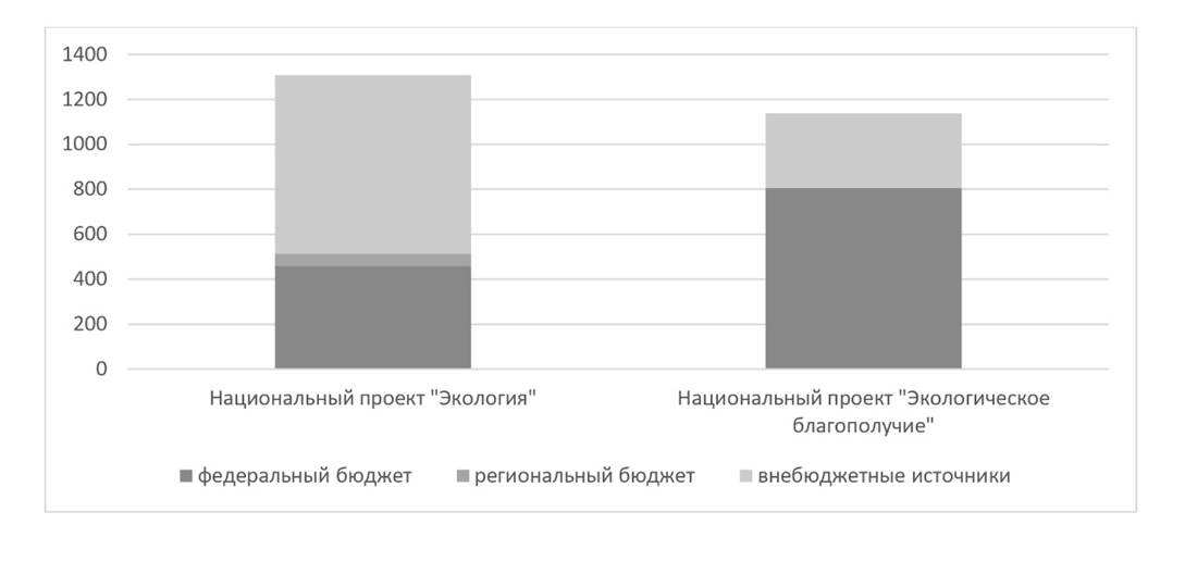 Рисунок 1 – Бюджеты национальных проектов «Экология» и «Экологическое благополучие», млрд. руб.