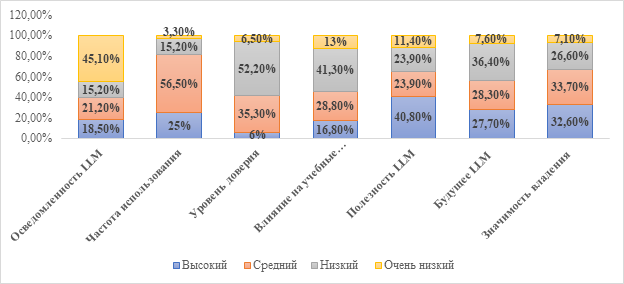 Рисунок 2 – Результаты опроса студентов экономического факультета по уровню влияния LLM моделей на образовательный процесс (составлено авторами на основе данных опроса)