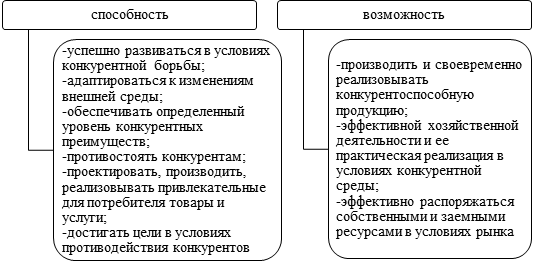 В отечественных исследованиях конкурентоспособность чаще всего рассматривается авторами через ключевые слова «способность» и «возможность» (рисунок 1).