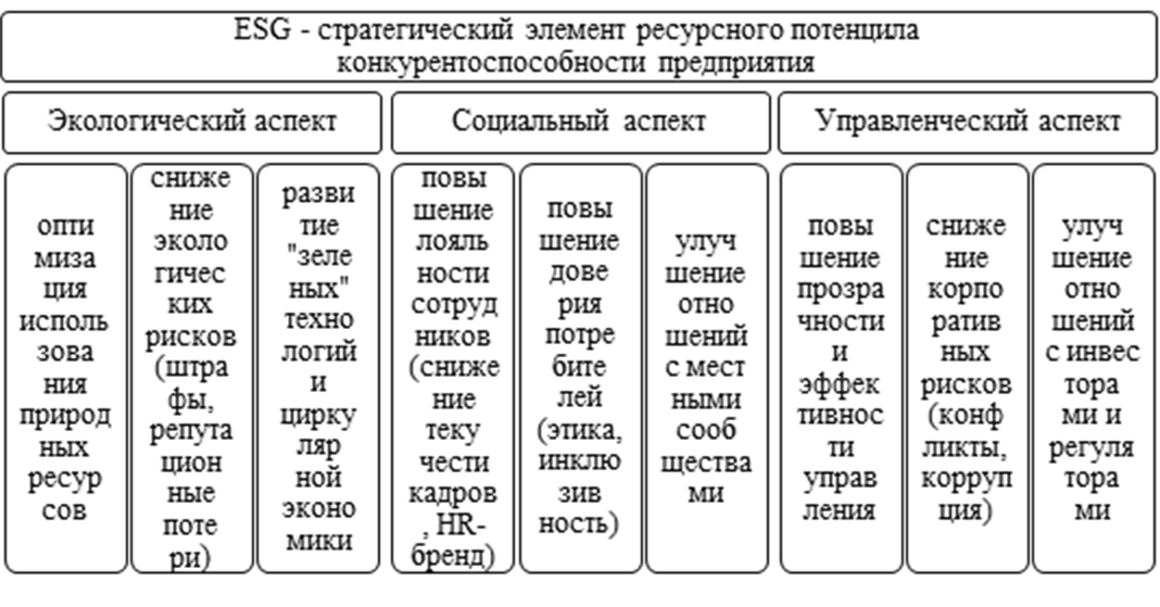 Рис. 2. ESG как стратегический элемент ресурсного потенциала конкурентоспособности предприятия