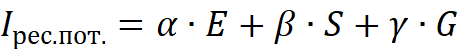 α, β, γ – весовые коэффициенты экологической, социальной и управленческой составляющих ресурсного потенциала конкурентоспособности предприятия соответственно; находятся в диапазоне (0; 1), их сумма равна 1.