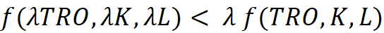 output function exhibits decreasing returns to scale (DRS) which signifies that