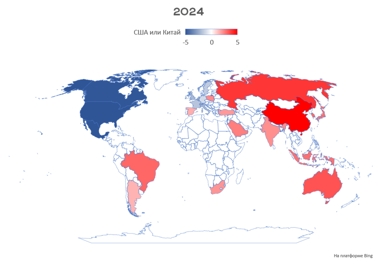 Следует отметить, что в начале 2000-х годов Соединенные Штаты были более важным с точки зрения объемов торговли партнером для большинства стран мира, тогда как Китай лидировал у небольшой группы (части азиатских соседей, отдельных государств Африки и Ближнего Востока). А по состоянию на 2024 год около 150 экономик мира больше ориентированы на торговлю с Китаем чем с США (у Америки порядка 60 таких стран-партнеров). [22]
