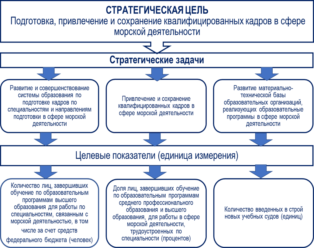 Рисунок 1. Стратегические цели, задачи и целевые показатели развития морской деятельности Российской Федерации