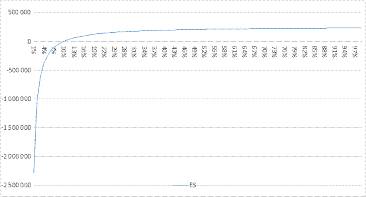 На основе результатов моделирования для каждой начальной ставки от 1% до 99% по массиву значений показателя НПР2 рассчитывается убыток VAR с доверительным уровнем 99% и ожидаемые средние убытки ES.